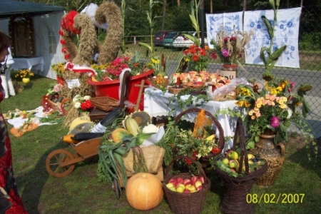 Bogato reprezentowana była wieś na wystawie plonów podczas gminnych dożynek. Można było skosztowac smacznych owocowych i warzywnych przetworów, przyrzadzonych przez mieszkanki naszej wioski. Zgodnie z tradycją wręczono dożynkowy wieniec największemu gospodarzowi w Górach.