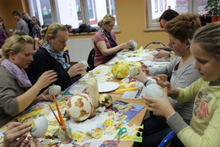 Wzięli w nich udział uczniowie wraz z rodzicami. Warsztaty poprowadziła pani Arleta Orłowska wprowadzając wszystkich w tajniki tej ciekawej techniki.