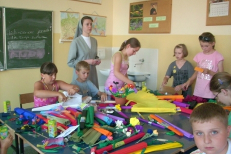 W szkole Podstawowej Sióstr Salezjanek w Ostrowie Wielkopolskim zorganizowane przez Siostrę Krystynę Lichwiarz , uczestnikami warsztatów były dzieci z pół koloni gościnnie braliśmy w nich udział dzieląc się doświadczeniem wykonaniu kwiatów .Celem warsztatów było ukazanie możliwości wykorzystania bibuły w ciekawy sposób. Każdy uczestnik spotkania opuściła warsztaty z własnoręcznie wykonaną stokrotką , słonecznikiem z bibuły, które wyglądały jak żywe.